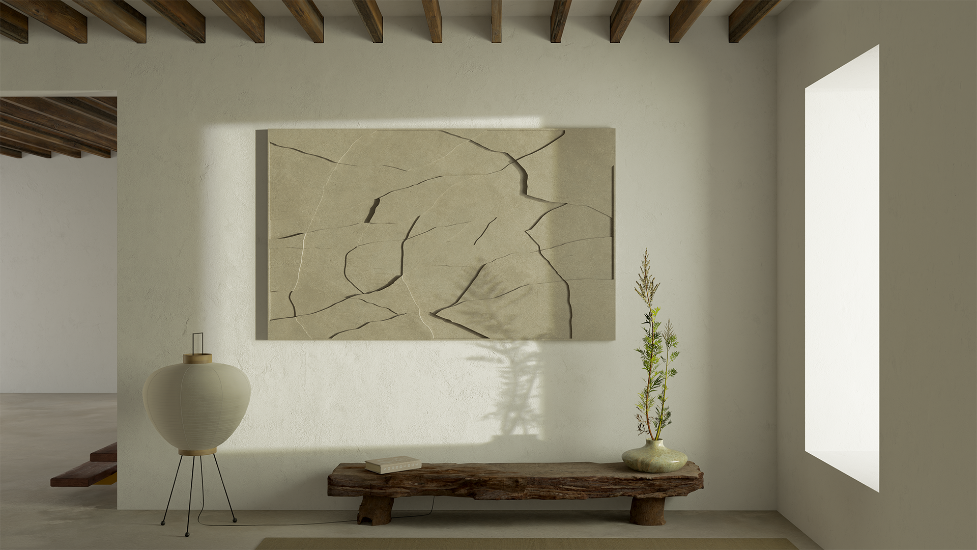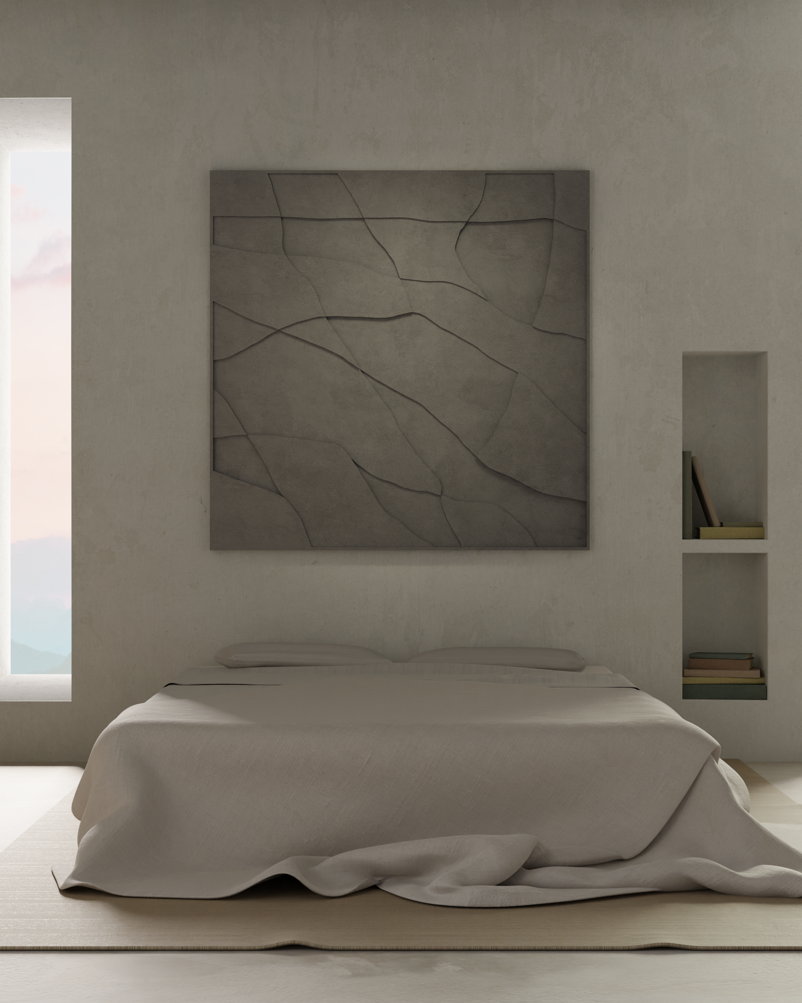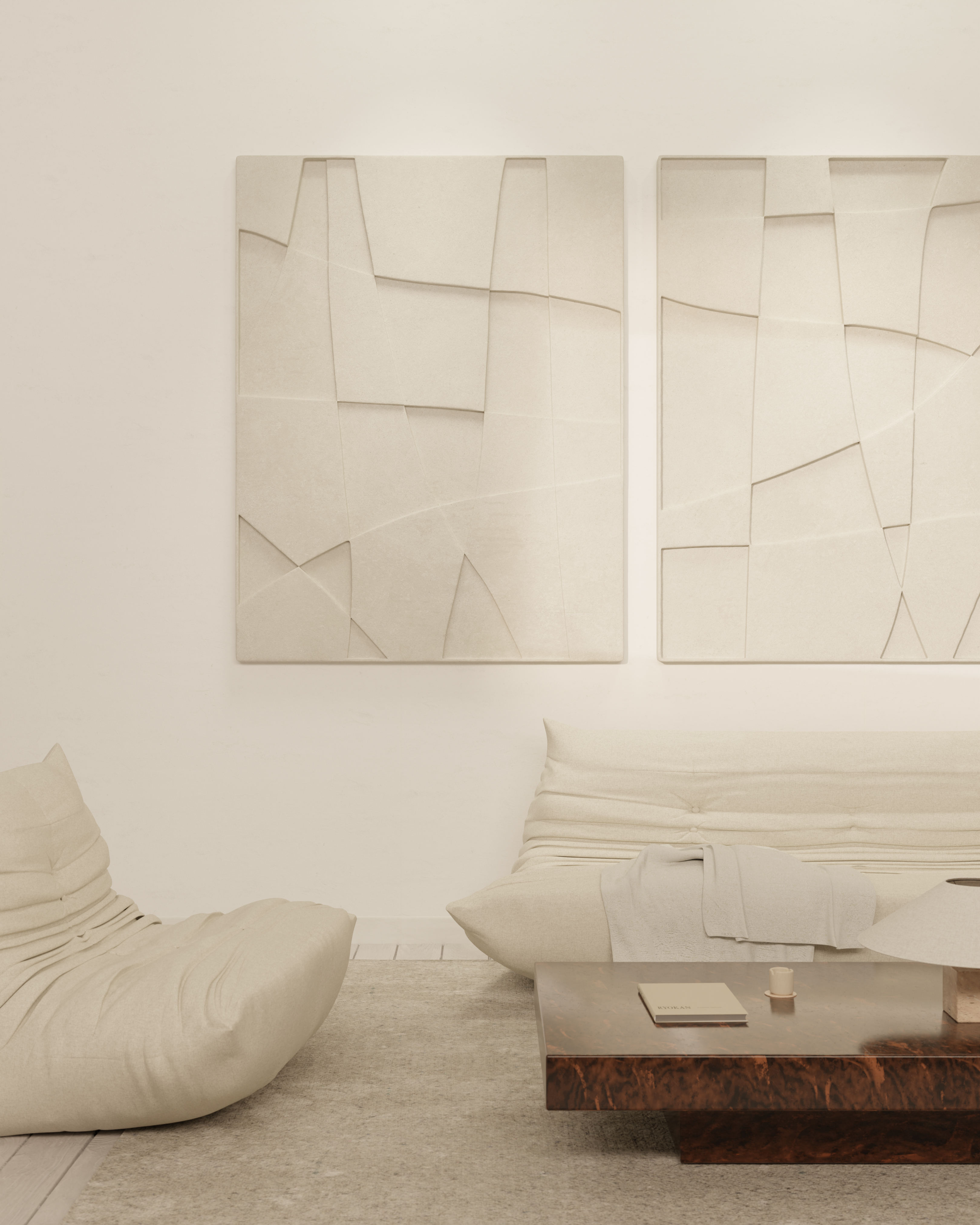 “Inspired by the ancient decorative technique of low relief, the works are both ephemeral and grounded – evocative of natural and architectural contours, shapes, and forms.”